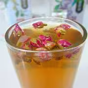 材料:玫瑰花15朵、炒麥芽6克、川芎3克、石斛3克。