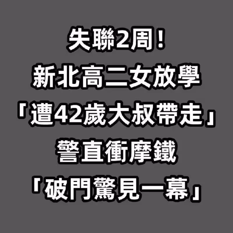 失聯2周! 新北高二女放學「遭42歲大叔帶走」 警直衝摩鐵「破門驚見一幕!」