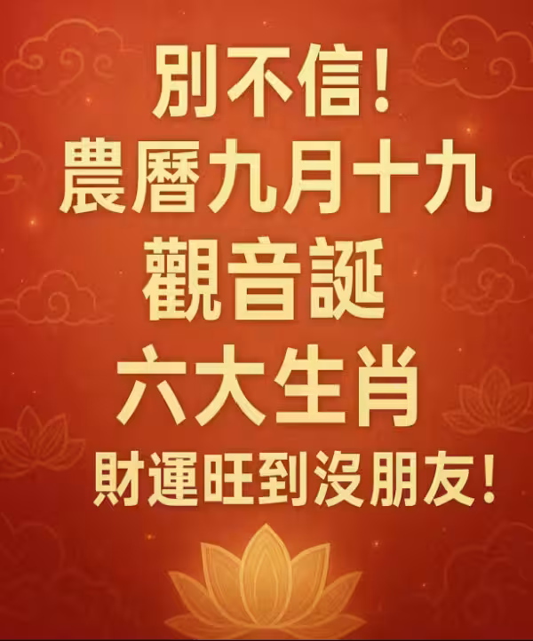 別不信! 農曆九月十九「觀音誕」六大生肖「財運旺」到沒朋友