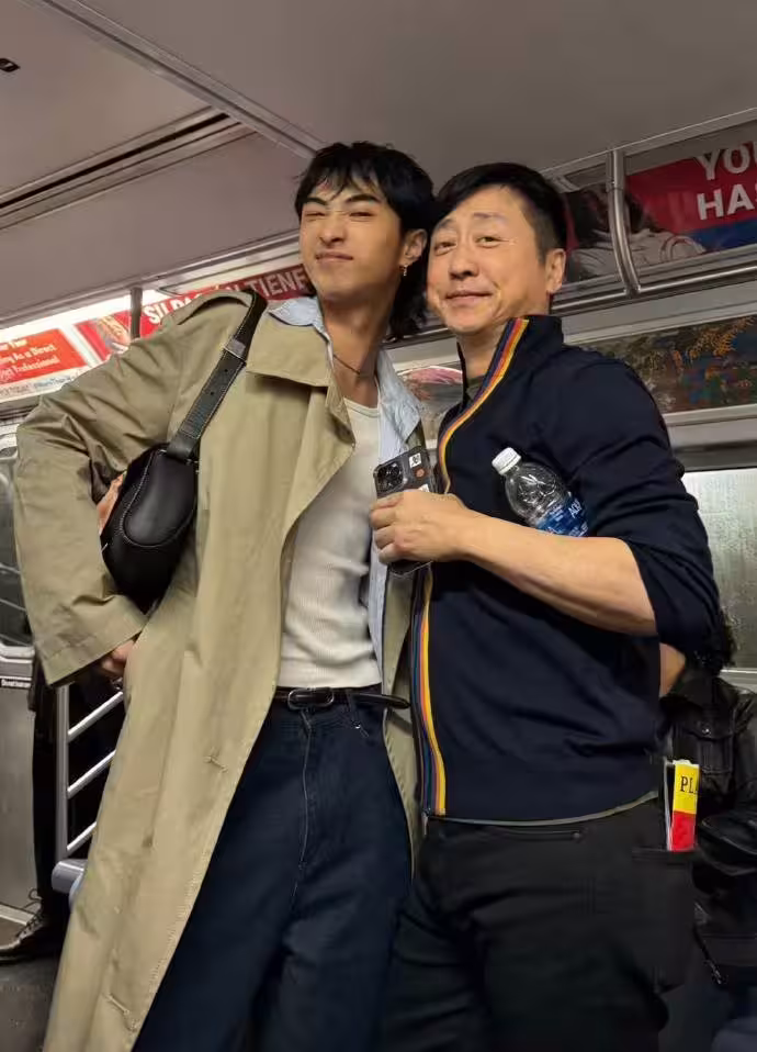 有一次,粉絲遇到恩利與父親一路邊一起吃烤腸。