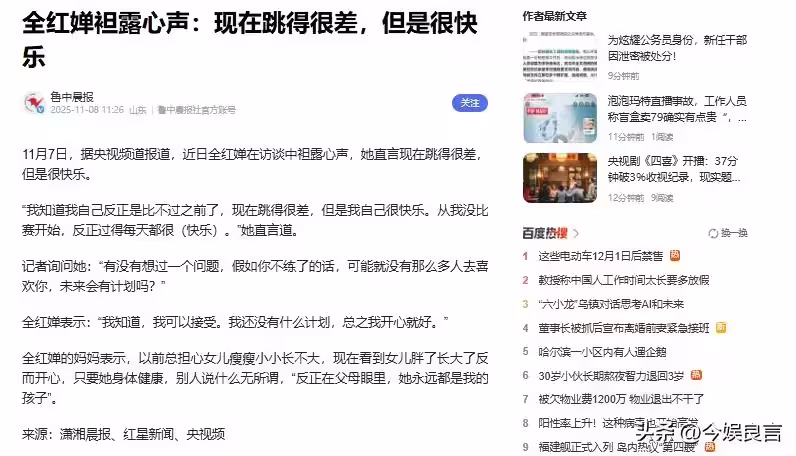 無緣冠軍一周,全紅嬋凌晨發文暴露真實現況,父親的擔心應驗了