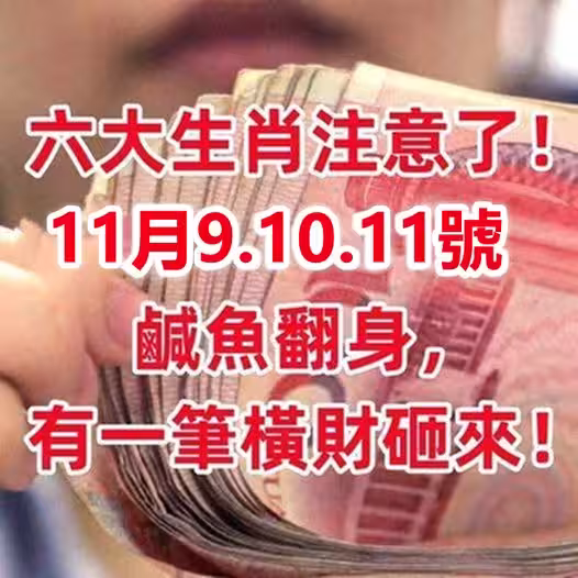 六大生肖注意了!11月9.10.11號鹹魚翻身,有一筆橫財砸來