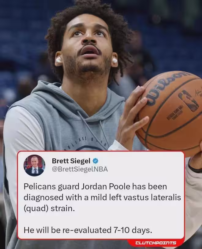 前腳內線核心錫安因左腿一級膕繩肌拉傷高掛免戰牌(至少休戰一周),後腳外線核心普爾就因左腿股外側肌輕度拉傷躺進醫院了,7至10天後接受複查。