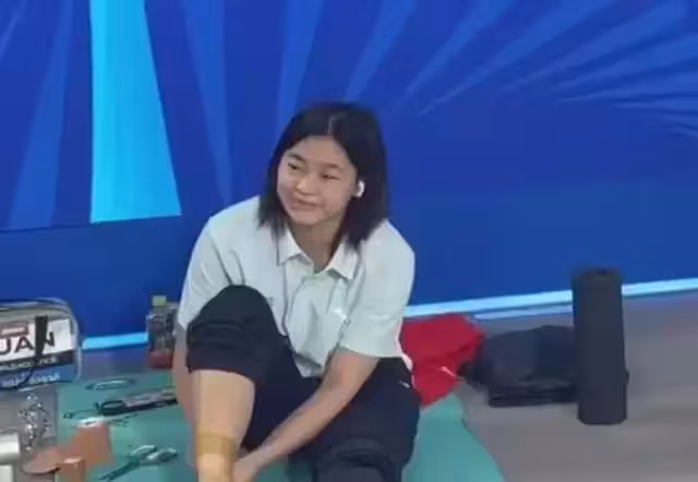 脛骨和踝關節的老傷復發,導致她賽前、賽後都需要冰敷緩解,訓練時全身貼滿肌貼,每跳一次都伴隨著刺痛。