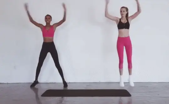 注意:膝蓋不要內扣,保持腳尖與膝蓋方向一致;初學者若覺得太難,可以先做普通深蹲,不做跳躍動作。