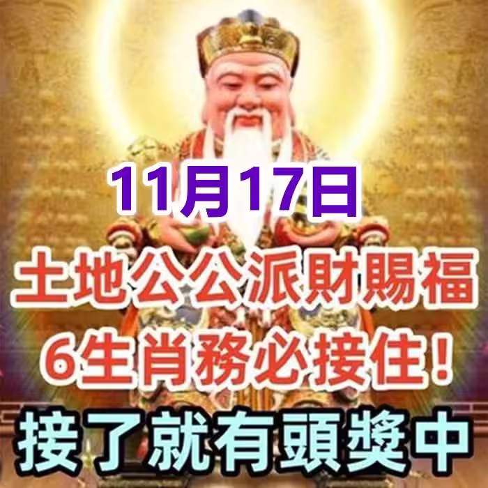 11月17日:土地公公派財賜福,6生肖務必接住!接了就有頭獎中.