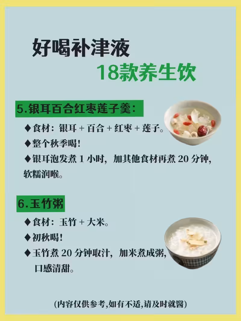 進入秋季後,少補水,多補津液