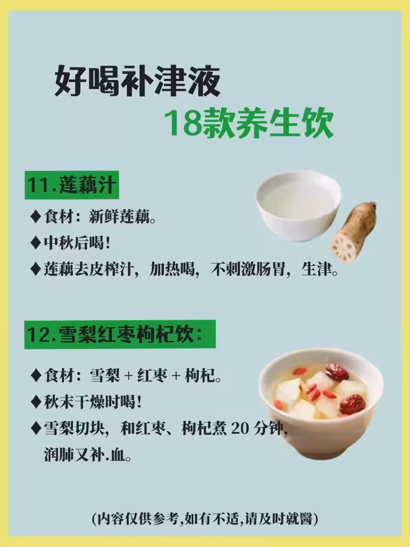 進入秋季後,少補水,多補津液