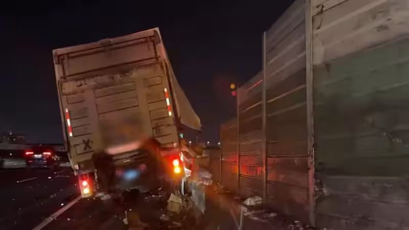 昨天(21)晚間10點多,國道一號上發生了一起死亡交通事故,當時貨車經過台中大雅路段時,車輛突然失控撞上護欄跟隔音牆,除了車頭嚴重毀損,劇烈的撞擊力道也導致副駕乘客直接被拋飛到車外,當場死亡。
