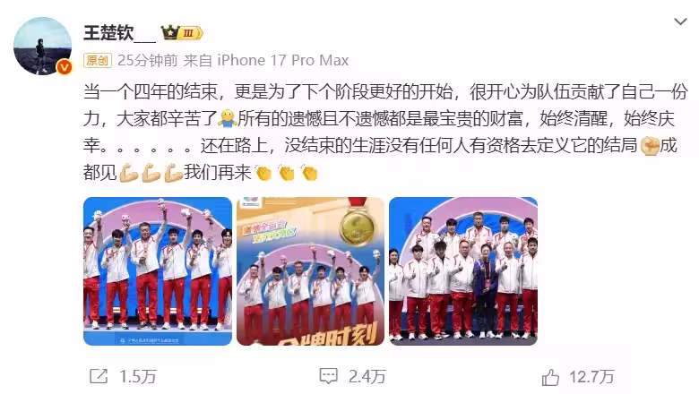 王楚欽談全運會:所有的遺憾、不遺憾都是財富,沒結束的生涯沒人能定義結局,成都再來