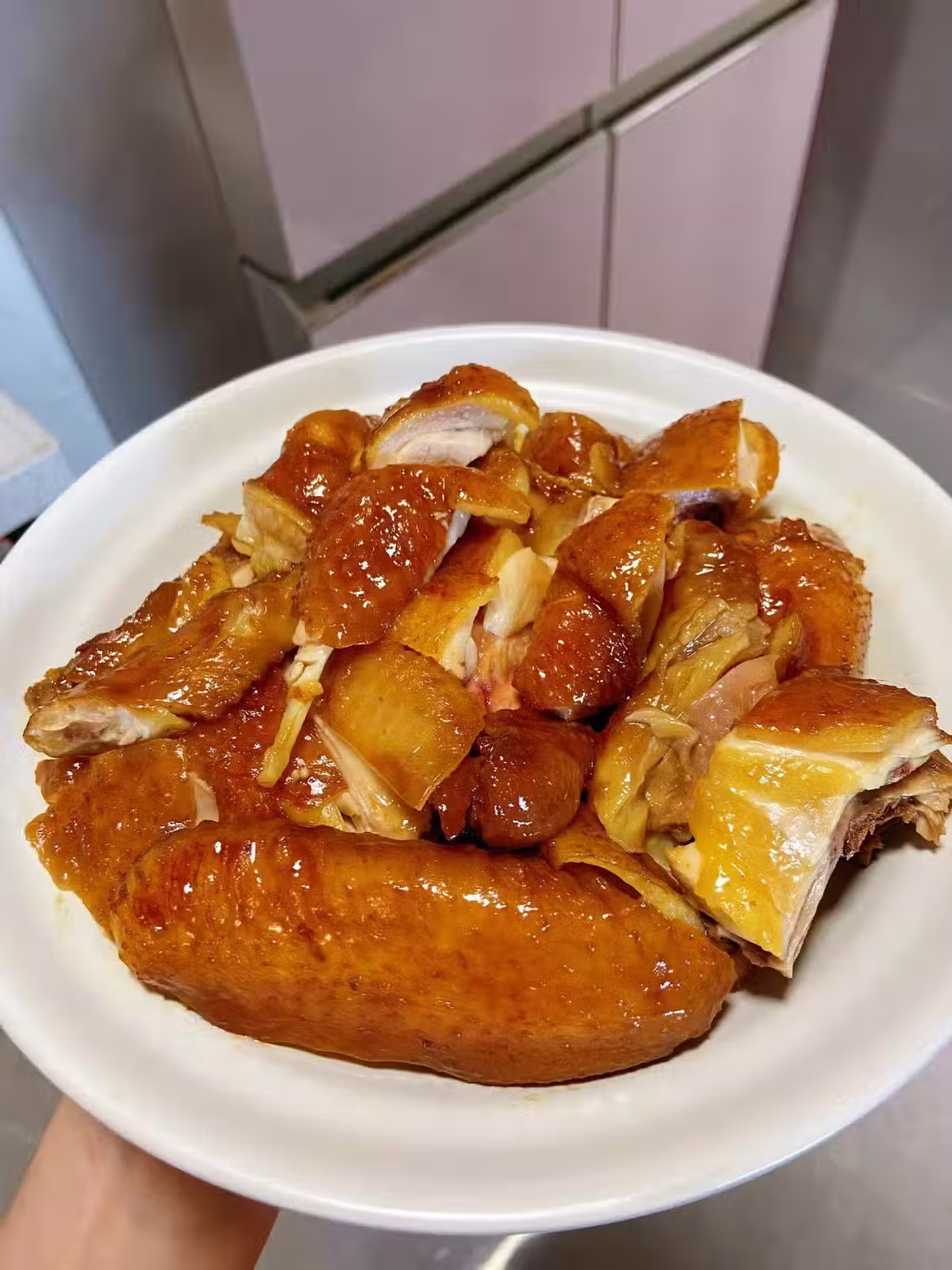 5. 最後把雞放涼,斬塊,淋上剩下的湯汁就搞定了。