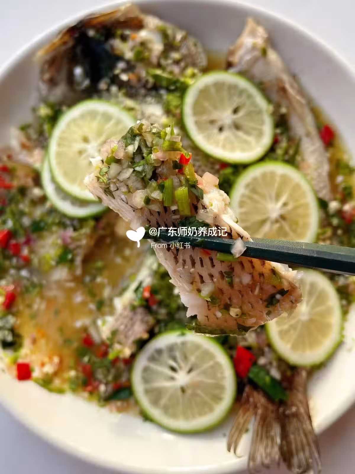 鱸魚,青檸檬,小青檸,檸檬葉,小米辣,青辣椒,洋蔥,姜蒜,香菜,魚露