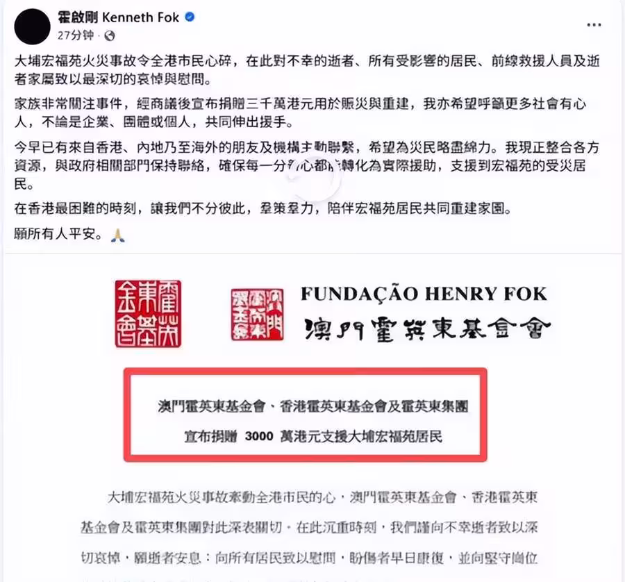 現在霍家正整合各方資源,與相關部門保持聯絡,確保每一分善心都能轉化為實際援助,支援到宏福苑的受災居民。