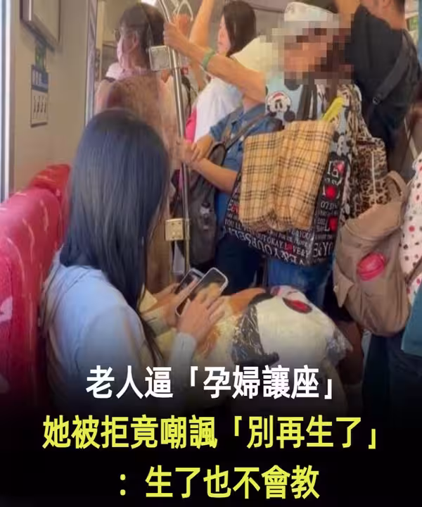 地鐵站老人逼「孕婦讓座」 被拒竟嘲諷「別再生了」:生了也不會教...下秒1舉動「全車空氣凝結」
