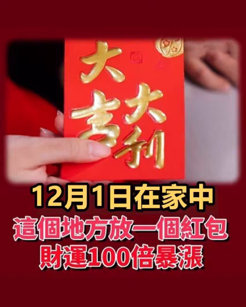 12月1日在家中這個地方 放一個紅包 能讓財運100倍暴漲 好運一路旺到年底