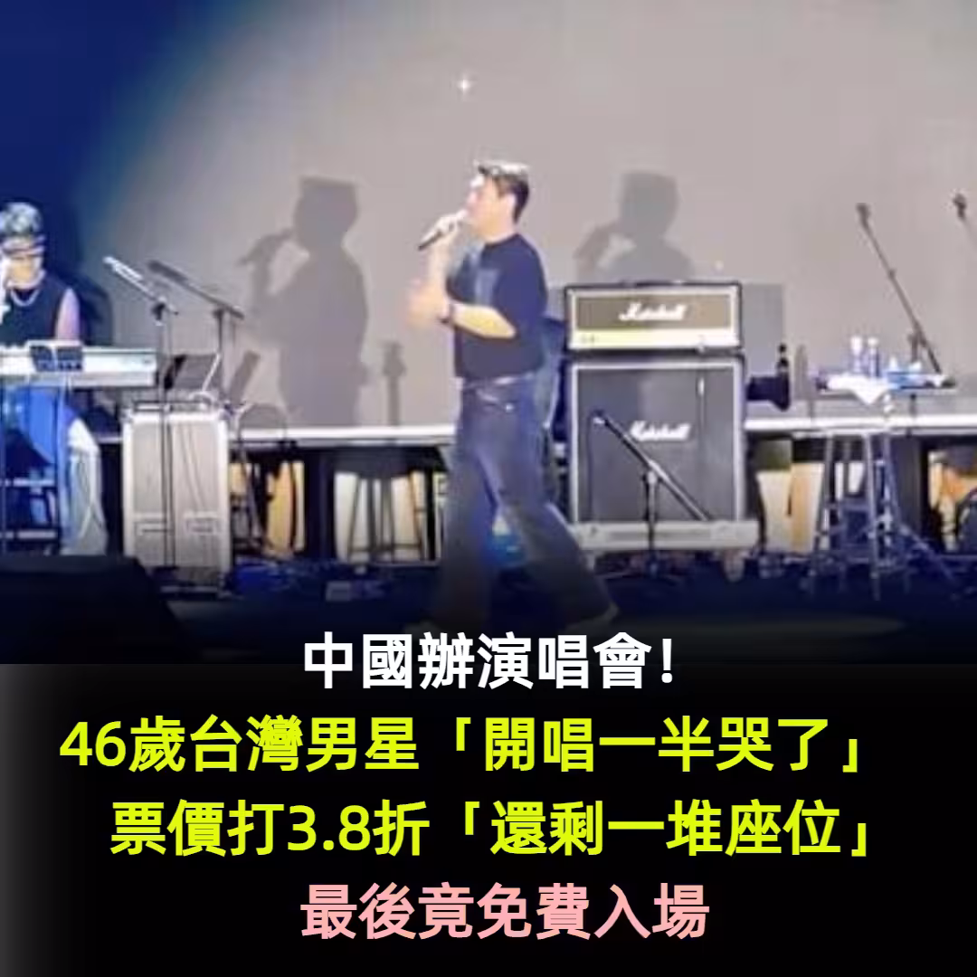 中國辦演唱會!!! 46歲台灣男星「開唱一半哭了」票價打3.8折「還剩一堆座位」 最後竟免費入場