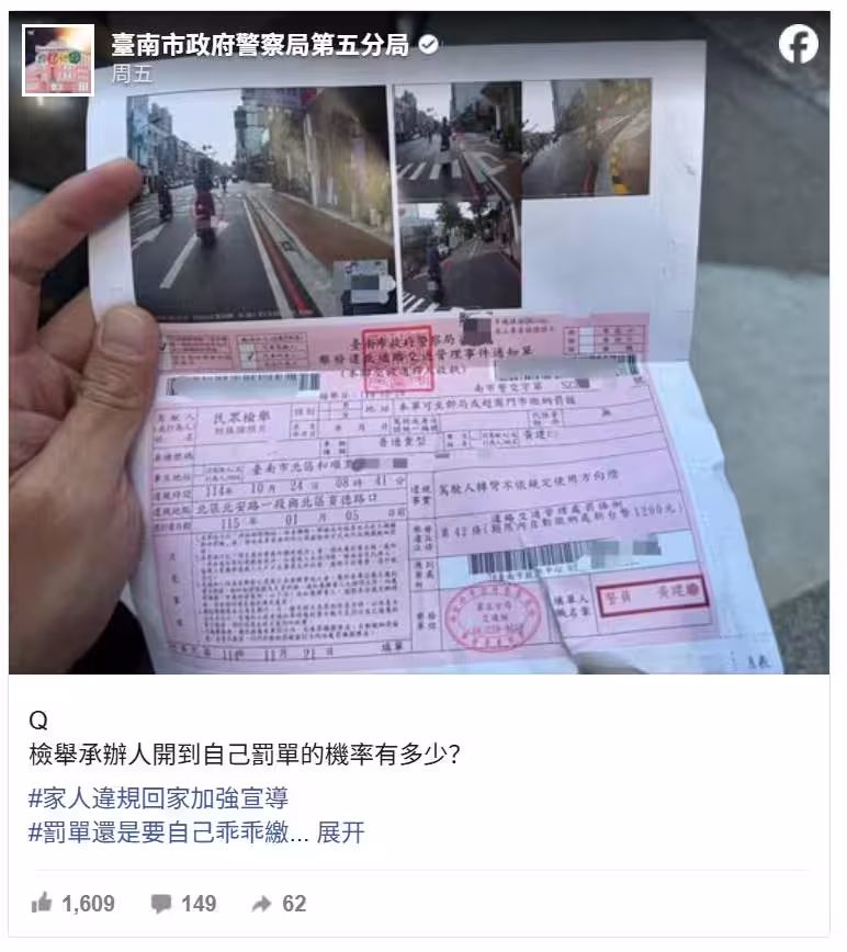 台南員警竟開到「自己的罰單」 真相曝光!他苦笑:只能乖乖繳