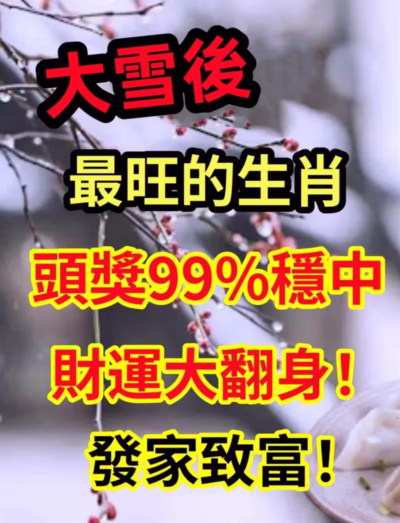 大雪後最旺的生肖! 「頭獎99%穩中」 財運大翻身,發家致富!