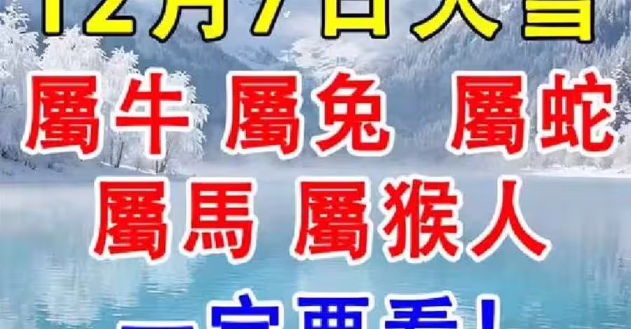 12月7日大雪「屬牛 屬兔 屬蛇 屬馬 屬猴人」一定要看!