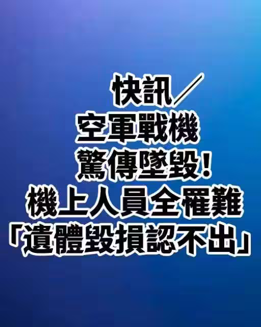 快訊/空軍戰機驚傳墜毀!機上人員全罹難 「遺體毀損認不出」!