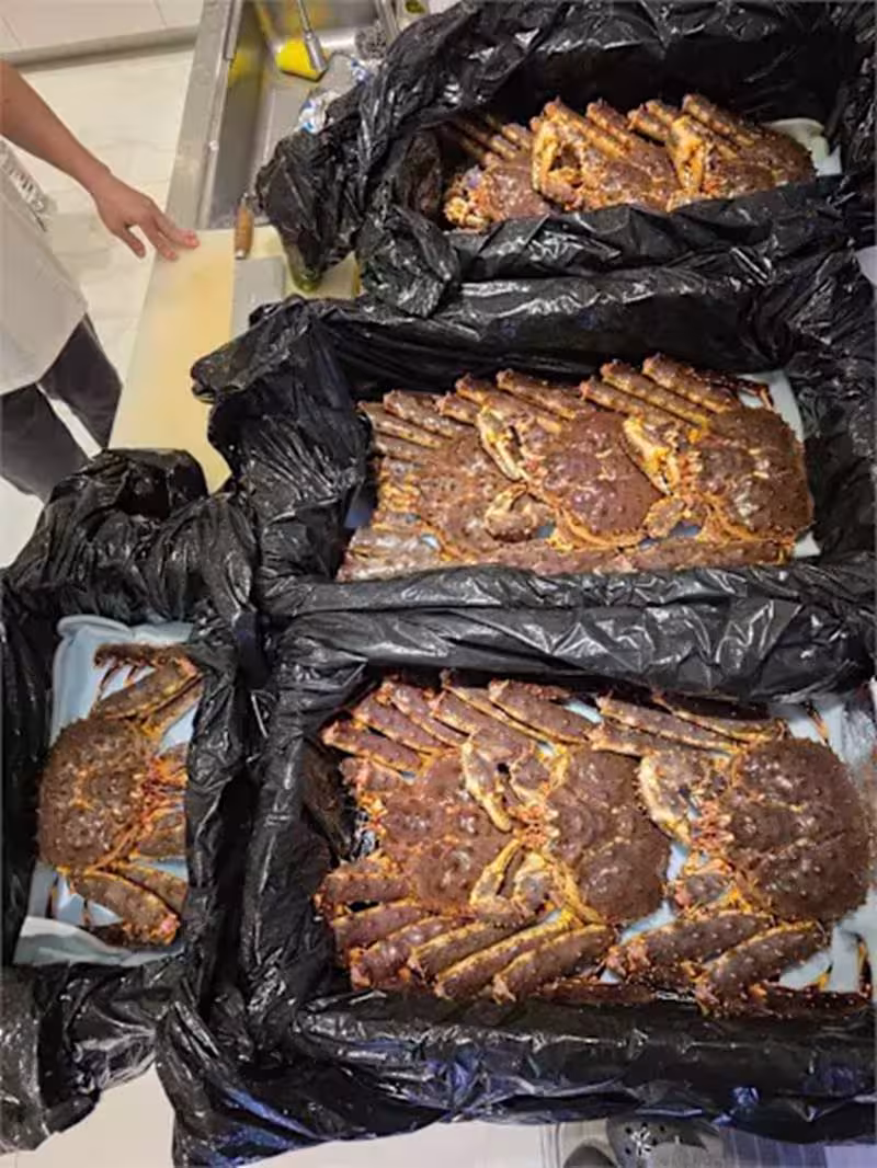 十隻帝王蟹是大樓創辦人朋友送給客戶的,晚上就被煮來吃光。