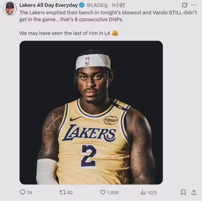 雙鬼拍門!連續8場DNP!湖人徹底放棄范德彪