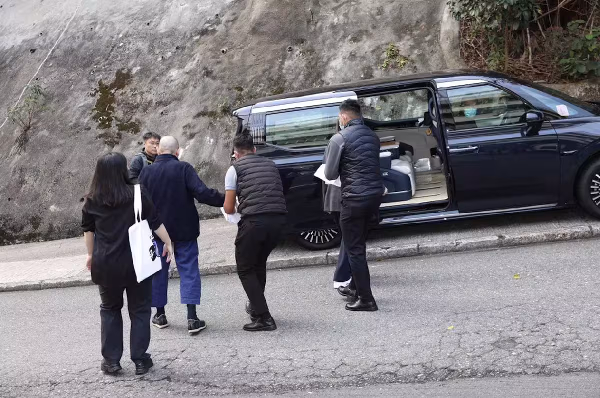 74歲劉鑾雄坐輪椅現身,需甘比攙扶起身,保鏢助理共五人相伴在旁