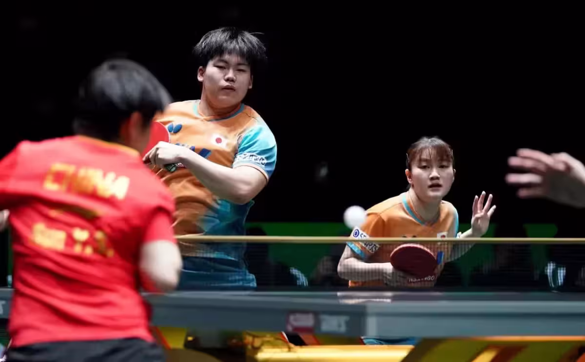 孫穎莎台內快速封堵銜接王楚欽中遠台暴力弧圈,第三局日本組合追至5-5時,兩人連得6分終結比賽。