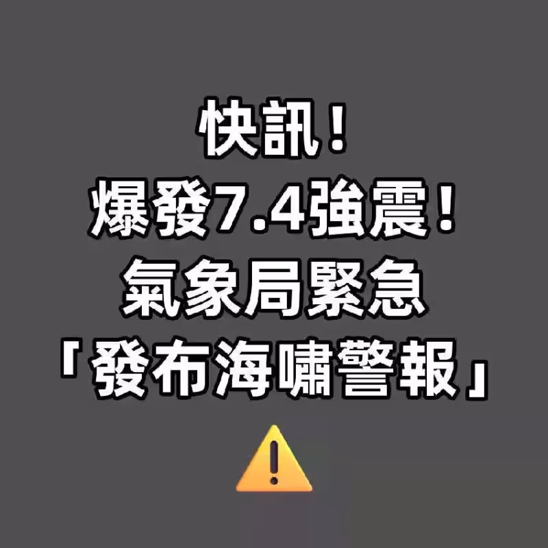 快訊/爆發7.4強震! 氣象局緊急 「發布海嘯警報」!