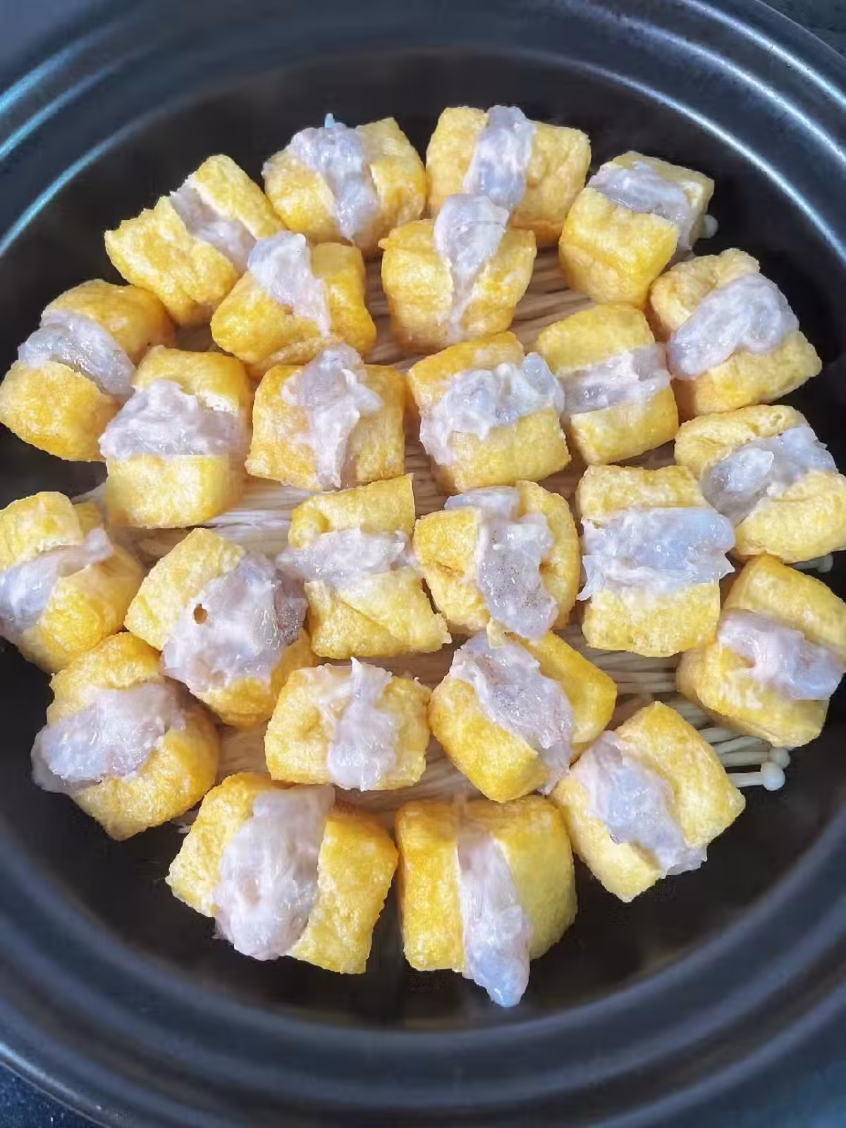 這個油豆腐釀蝦滑真的是嘎嘎下飯啊