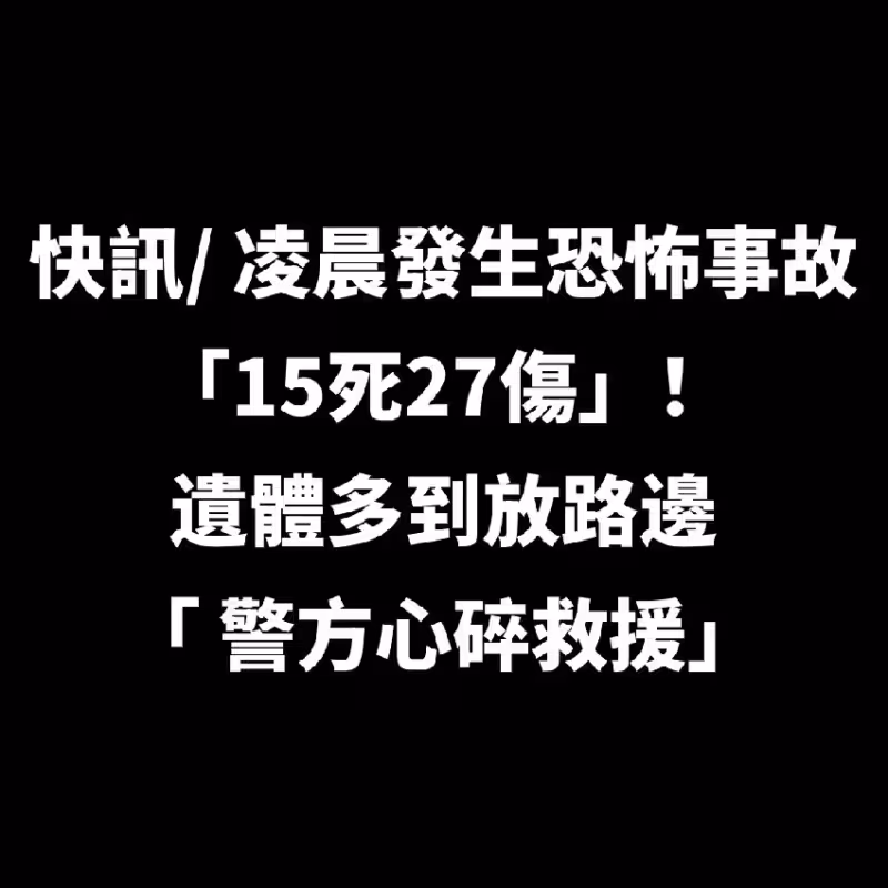 快訊/凌晨發生恐怖事故「15死27傷」!遺體多到放路邊 「 警方心碎救援」!