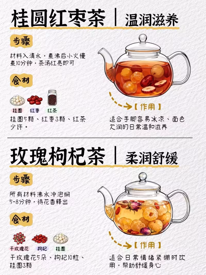 喝上一口,甜絲絲的暖意從喉嚨滑到胃裡,日常喝能慢慢改善面色欠潤、手腳冰涼的問題,把丟失的暖意補回來。