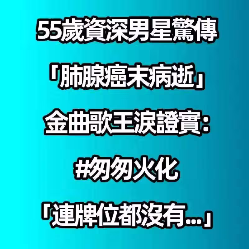55歲資深男星驚傳「肺腺癌末病逝」!金曲歌王淚證實:「匆匆火化連牌位都沒有............」