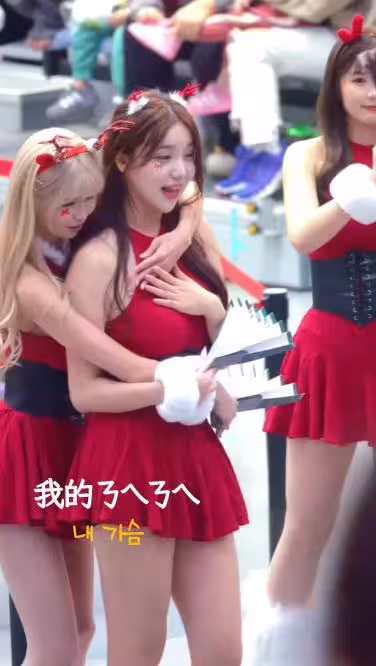 見此,後方的金髮正妹隊友Abby也偷偷伸手向前,開玩笑地做出吃豆腐的動作,隨後趕緊抱住被嚇壞的金賢姈。