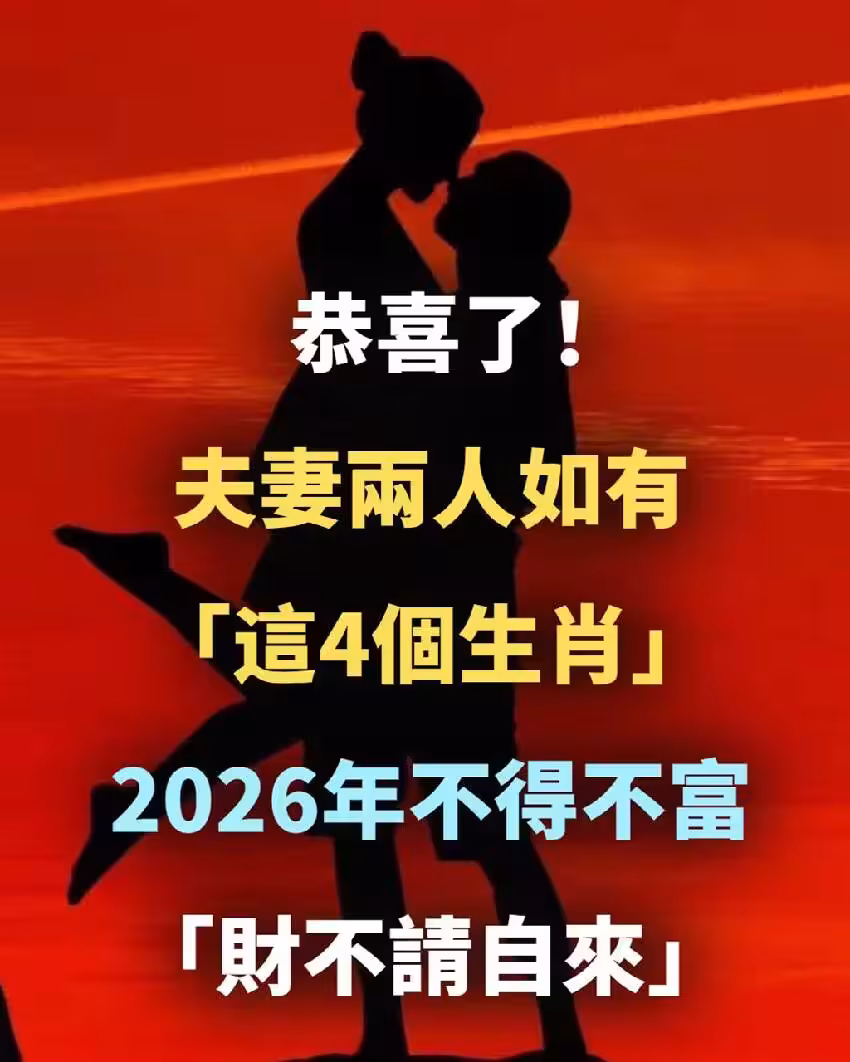 恭喜了!夫妻兩人如有「這4個生肖」2026年不得不富「財不請自來」