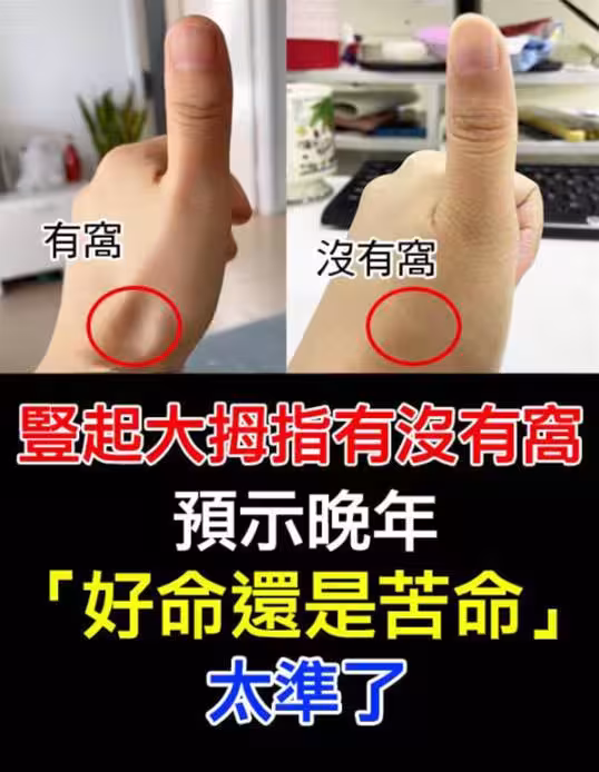 豎起大拇指沒有沒窩,預示晚年「好命還是苦命」:太准了!