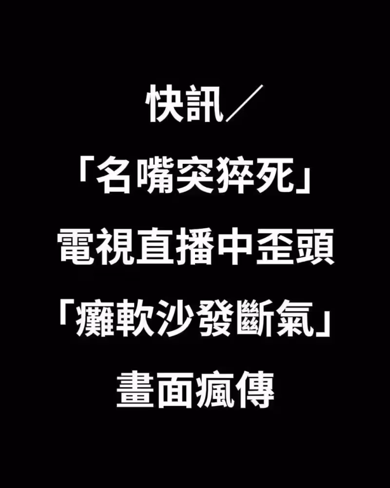 快訊/「名嘴突猝死」電視直播中 「歪頭癱軟沙發斷氣」 畫面瘋傳!