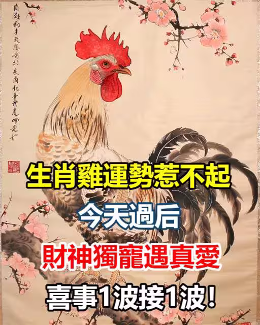 生肖雞運勢惹不起,今天過後財神獨寵,遇真愛,喜事1波接1波!