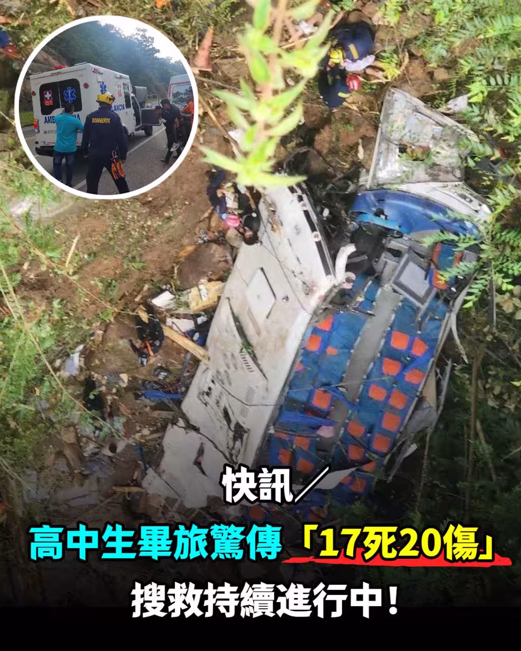 一輛搭載約40名高中橄欖球的童車,在途中返回疑似因駕駛疲勞導致,從公路翻落深達76米的山谷,釀成17人死亡、逾20人輕重的慘劇。