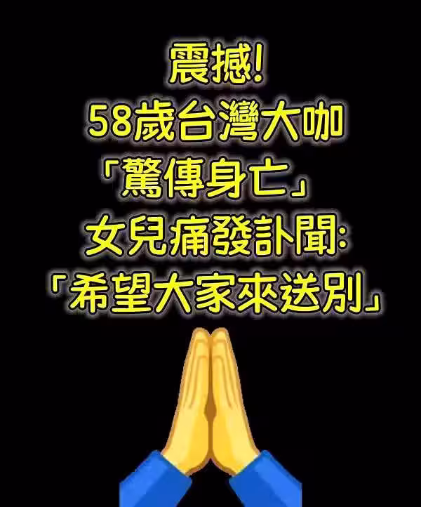震撼!58歲台灣大咖「驚傳身亡」 女兒痛發訃聞:「希望大家來送別」
