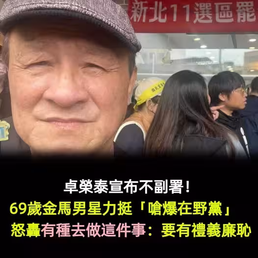 卓榮泰宣布不副署!69歲金馬男星力挺「嗆爆在野黨」 怒轟「有種去做這件事」: 要有禮義廉恥!