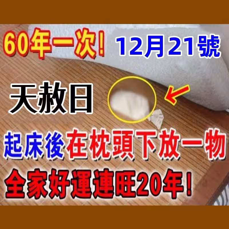 不是迷信!就在12月21號「天赦日」,起床牢記在枕頭下放一物,隔天就有橫財降臨!全家好運連旺20年!