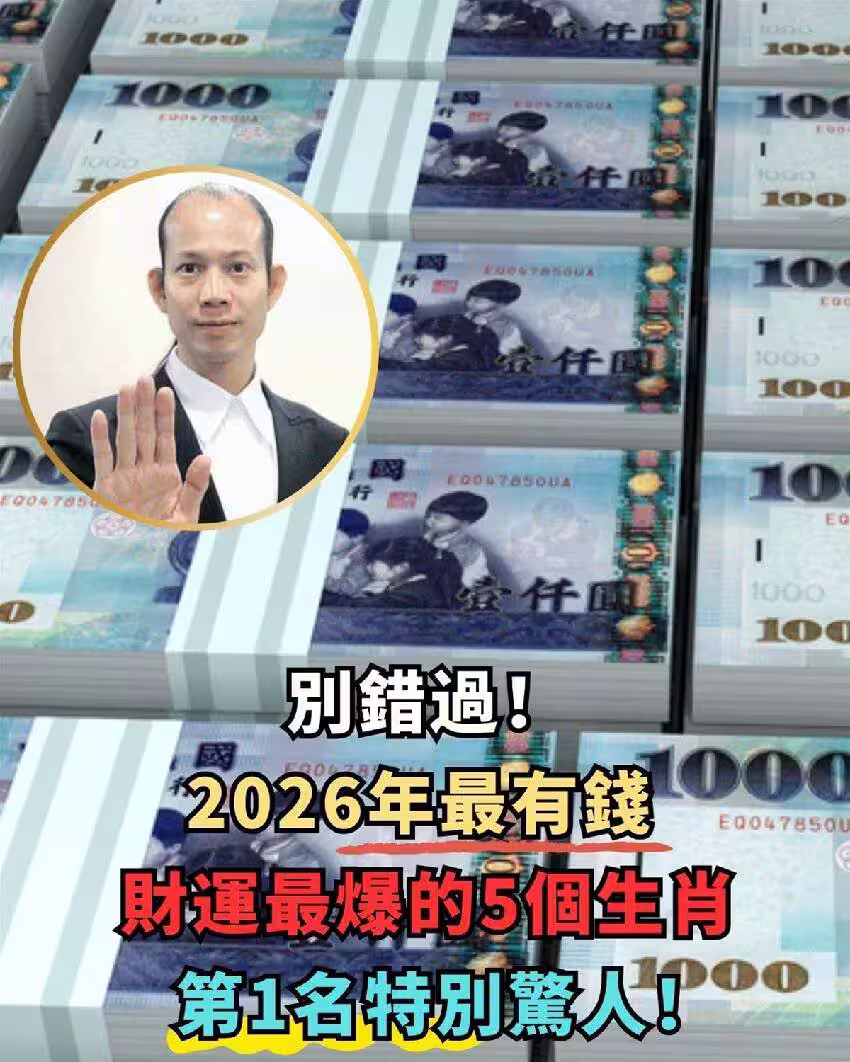 別錯過!2026年最有錢,財運最爆的5個生肖,第1名特別驚人!