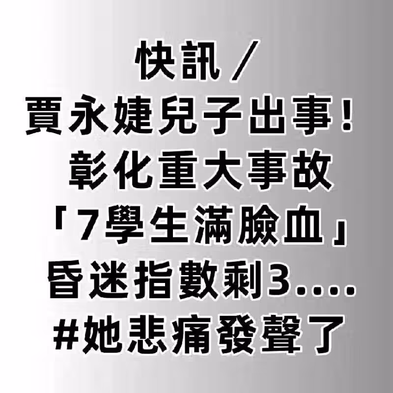 快訊/賈永婕兒子出事!彰化重大事故「7學生滿臉血」昏迷指數剩3.... #她悲痛發聲了