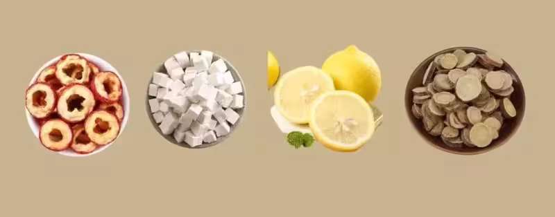 山楂+茯苓+檸檬+甘草:適合濕氣重,愛吃重口味的寶。