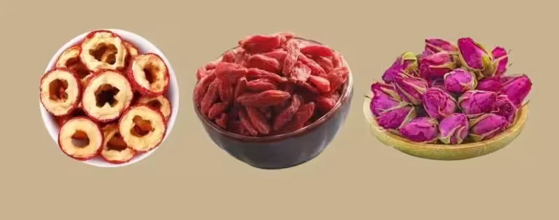 山楂+枸杞+玫瑰:活血化淤,滋補肝腎。適合代謝慢,愛吃辛辣油膩食物的寶。
