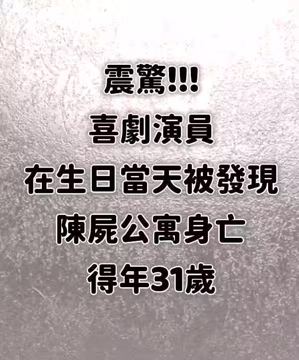 震驚!!!喜劇演員,在生日當天被發現陳屍公寓身.亡