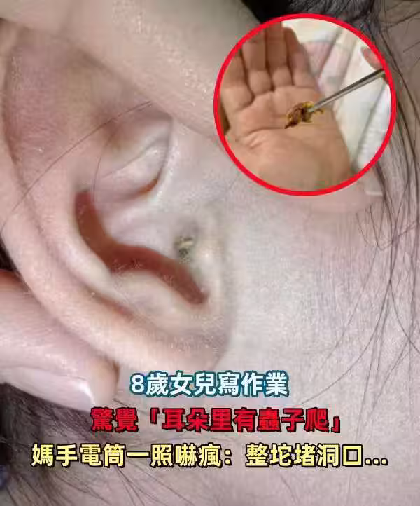 8歲女兒寫作業驚覺「耳朵里有蟲子爬」!媽手電筒一照嚇瘋:整坨堵洞口…