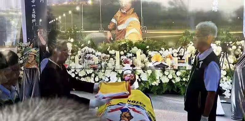 ▼▲李元瀚拼復電不幸殉職,棺木覆蓋台電會旗,以表其對台電奉獻,李妻接下褒揚令。 (圖/記者廖國雄攝影)