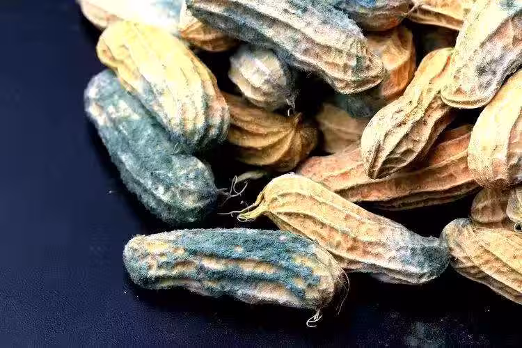 霉變的食物內很可能會含有黃曲黴素,尤其是花生、玉米、堅果等澱粉含量高的食物,發霉後更容易生成。黃曲黴素是個劇毒、致癌作用很強的物質,攝入1mg即可導致身體患癌。
